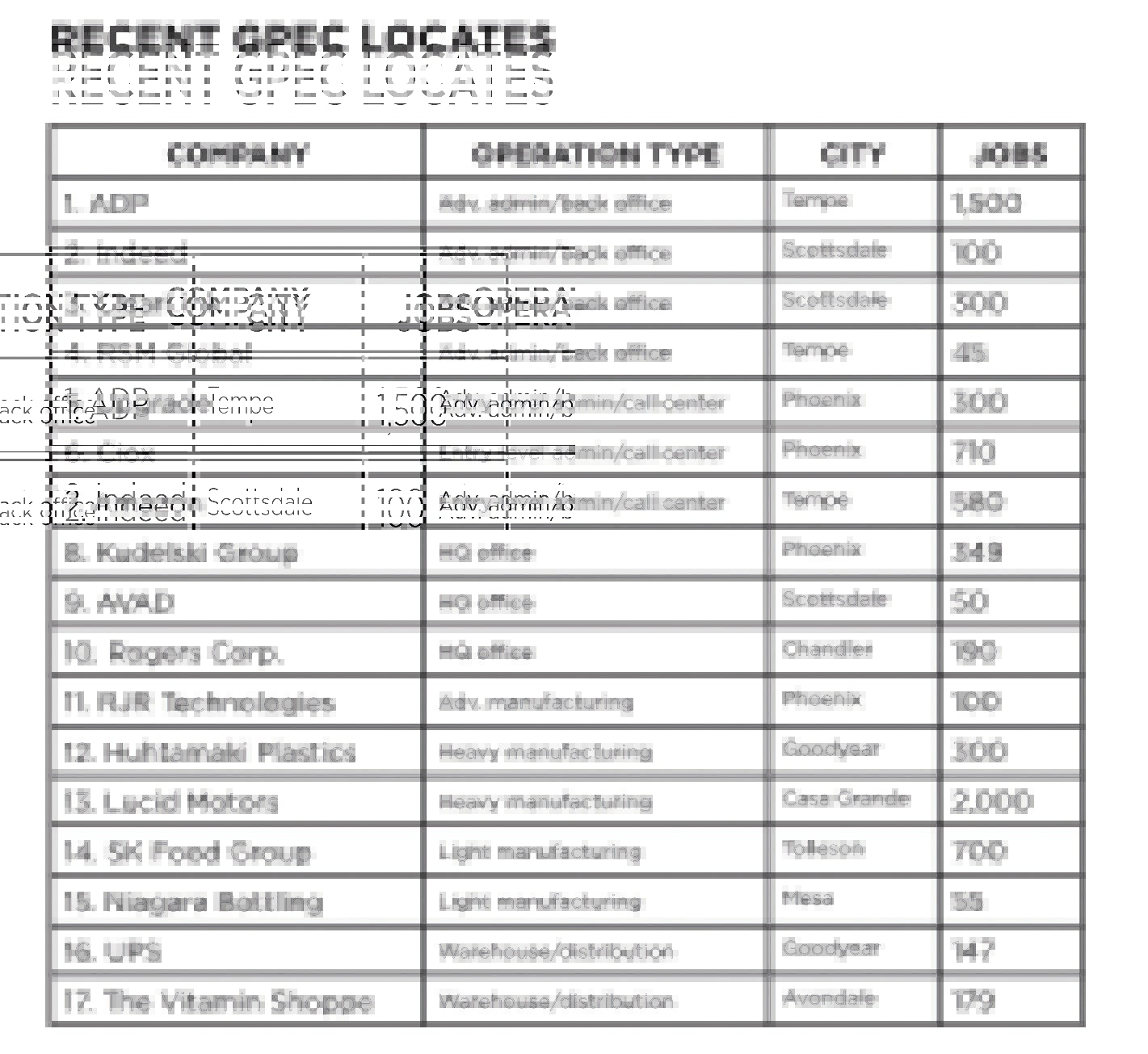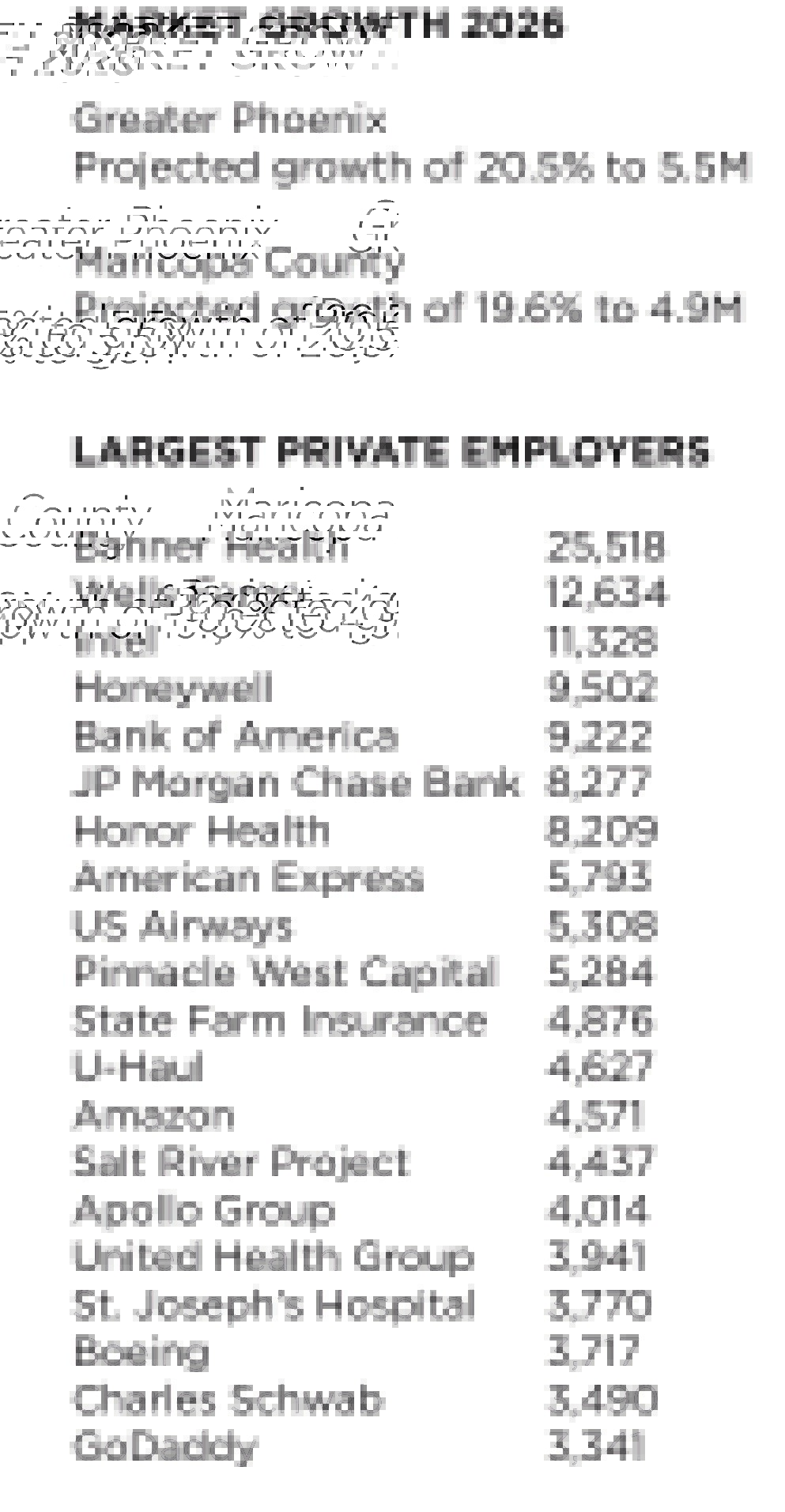 The size of the market is assuredly an attribute to larger companies who are looking to place their operations here. Notable companies such as Charles Schwab, USAA, State Farm and Northern Trust have sizable centralized operations in the region. Companies like Avnet, GoDaddy and Insight have their headquarters here as well. However, in the past few years, companies such as Kudelski Group, Carlisle Companies, Rogers Corporation and most recently, Benchmark Electronics, have all relocated their headquarters to the market.
