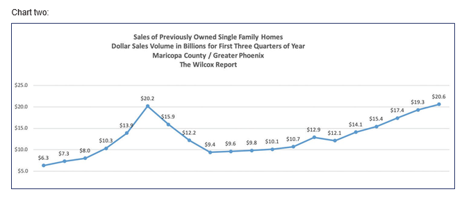 The third quarter is over and the results are in. Dollar sales volume for the first three quarters of 2019 surpassed the previous record set in 2005. Dollar sales volume for the first three quarters of 2019 was $20.6 billion surpassing the $20.2 billion set in the pre-real estate recession year of 2005. The dollar sales volume is for previously owned single-family homes in Maricopa County (Greater Phoenix).