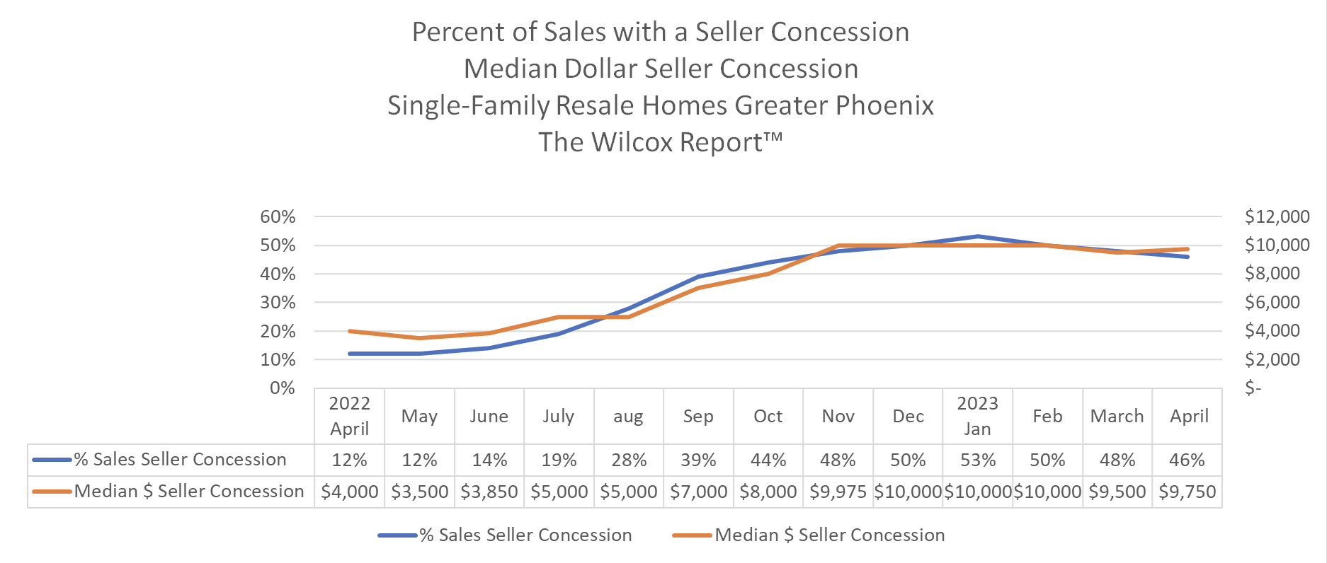 - The median dollar seller concession in April 2023 ($9,750) up $250 or 3% over March 2023 ($9,500). April 2023 ($9,750) is $5,750 or 143% higher than April 2022 ($4,000).